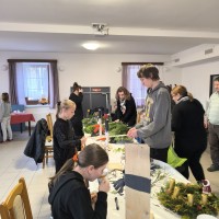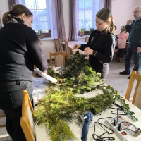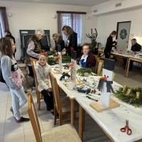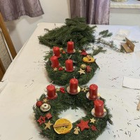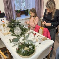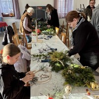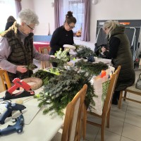 Při adventním tvoření se zúčastnilo víc dospělých lidí a důchodců než dětí. Vytvářely se hlavně adventní věnce, a taky se vytvářely sněhuláci a koule z větví. Pro zahřátí se podával svařený džus s plátkem pomeranče a citronu.